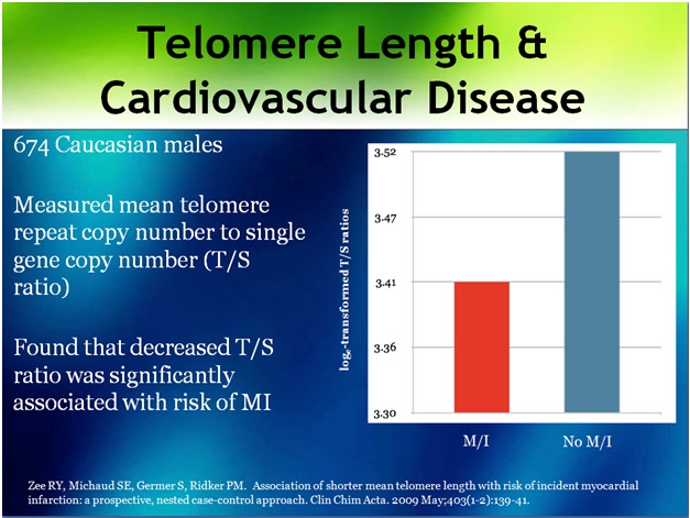 Your feedback is most appreciated: E-mail to: Author Walter Sorochan To return to: web-site main page References: 1 Haber Carole, "Life Extension and History: The Continual Search for the Fountain of Youth," Journal of Gerontology: BIOLOGICAL SCIENCES Copyright 2004, Vol. 59A, No. 6, 515–522. Haber: Fountain of youth 2004 2 Wikipedia, Elizabeth Blackburn." Wiki: Blackburn 3 Southwestern University, "Facts about telomeres and telomerase," 2008. SWU: Teleform info 4 Wikipedia, "Hayflick limit." Wiki: Hayflick limit 5 Serrano, Antonio L. Vicente Andrés, "Review Telomeres and Cardiovascular Disease, Does Size Matter?" Circulation Research, February 4, 2004. Serrano: review CVD & telomeres 2004 6 Jaskelhoff Mariela, and others, "Telomerase reactivation reverses tissue degeneration in aged telomerase-deficient mice," Nature, January 6, 2011;469(7328):102-6. Jaskelhoff: Telomere reverses aging 2011 7 Willeit Peter and others, "Longitudinal Changes in Leukocyte Telomere Length and Mortality in Humans," J Gerontol A Biol Sci Med Sci, 2014: 69A (2): 231-239, first published online October 22, 2013. Willeit: telomere length & mortality 2014 8 Okereke OI, Prescott J, Wong JYY, Han J, Rexrode KM, et al., "High Phobic Anxiety Is Related to Lower Leukocyte Telomere Length in Women," PLoS ONE, 2012,7(7): e40516. doi:10.1371. Okereke: Anxiety lin telomeres 2012 9 Jaskelhoff Mariela, and others, "Telomerase reactivation reverses tissue degeneration in aged telomerase-deficient mice," Nature, January 6, 2011;469(7328):102-6. Jaskelhoff: Telomere reverses aging 2011 10 Wikgren M, Karlsson T, Söderlund H, Nordin A, Roos G, Nilsson LG, Adolfsson R, Norrback KF.,"Shorter telomere length is linked to brain atrophy and white matter hyperintensities," Age Ageing. November 14, 2013. Wikgren: Brain & telomeres 2013 11 Aida J. and others, "Telomere lengths in the oral epithelia with and without carcinoma," Eur J Cancer, January 2010;46(2):430-8. Aida: mouth cancers & telomeres 2010 12 Diehl Malissa C., "Elevated TRF2 in advanced breast cancers with short telomeres," Breast Cancer Res Treat, June 2011, 127(3): 623–630. Published online July 13, 2010. Diehl: cancer elevated in short telomeres 2010 13 McGrath Monica, "Telomere Length, Cigarette Smoking, and Bladder Cancer Risk in Men and Women," Cancer Epidemiol Biomarkers Prev, April 2007. McGrath: smoking & telomeres 2007 14 Rampazzo E, and others, "Relationship between telomere shortening, genetic instability, and site of tumour origin in colorectal cancers," British Journal of Cancer, April 13, 2010. Rampazzo: colon cancer & telomeres 2010 15 Shen J, Gammon MD, Terry MB, Wang Q, Bradshaw P, Teitelbaum SL, Neugut AI, Santella RM., "Telomere length, oxidative damage, antioxidants and breast cancer risk," Int J Cancer, April 2009, 1;124(7):1637-43. Shen: Antioxidants lengthen telomeres prevent cancer 2009 16 Carlquist John and others, "Telomere Length Predicts the Life Expectancy of Patients with Heart Disease," Intermountain Medical Center, SciTechDaily, March 11, 2013. Carlquist: telomere length heart disease 2013 17 Day Michael, "Shrinking telomeres linked to heart disease," New Scientist, January 12, 2007. Day: Telomeres linked to heart disease 2007 18 Farzaneh-Far R, et. al. “Association of Marine Omega-3 Fatty Acid Levels With Telomeric Aging in Patients With Coronary Heart Disease.” JAMA, 2010; 303(3): 250. Farzaneh-Far: Fatty-acids & telomeres 2010 19 Farzaneh-Far Ramin, Jue Lin, Elissa Epel, Kyle Lapham, Elizabeth Blackburn, Mary A. Whooley," Telomere Length Trajectory and Its Determinants in Persons with Coronary Artery Disease: Longitudinal Findings from the Heart and Soul Study," PLoS ONE, January 08, 2010, 5(1): e8612. doi:10.1371. Farzaneh-Far: Telomere heart study 2010 "Heart disease, age, male sex, and abdominal obesity also independently predicted telomere shortening." 20 Serrano, Antonio L. Vicente Andrés, "Review Telomeres and Cardiovascular Disease, Does Size Matter?" Circulation Research, February 4, 2004. Serrano: review CVD & telomeres 2004 21 Terai M, Izumiyama-Shimomura N, et. al. "Association of Telomere Shortening in Myocardium With Heart Weight Gain and Cause of Death." Sci Rep. 2013;3:2401. Terai: telomere & death 2013 22 Willet P. and others, "Cellular aging reflected by leukocyte telomere length predicts advanced atherosclerosis and cardiovascular disease risk," Arterioscler Thromb Basc biol, 2010;30:1649-56. Willet: cell age & telomere length 2010 23 Zee R, Michaud S, Germer S, Ridker P. “”Association of shorter mean telomere length with risk of incident myocardial infarction: a prospective, nested case-control approach.”” Clin Chim Acta. 2009 May;403(1-2):139-41. Zee: Telomeres & heart attack 2009 24 Tulane Center for Cardiovascular Health, "Leukocyte telomere length is associated with HDL cholesterol levels: The Bogalusa heart study," Atherosclerosis, August 2009, 205(2):620-5. Tulane: Cholesterol linked to tolomere 2009 25 Houben JM, Mercken EM, Ketelslegers HB, Bast A, Wouters EF, Hageman GJ, Schols AM., "Telomere shortening in chronic obstructive pulmonary disease," Respir Med, February 2009, 103(2):230-6 Houben: POD linked to telomeres 2009 26 Chunfang Wang, et al., "Insight Into Why Low Calorie Diet Can Extend Lifespan -- Even If Adopted Later in Life," British Society for Research on Ageing, July 2010. Chunfang Low Cal extend telomeres 2010 27 Farzaneh-Far R, et. al. “Association of Marine Omega-3 Fatty Acid Levels With Telomeric Aging in Patients With Coronary Heart Disease.” JAMA, 2010; 303(3): 250. Farzaneh-Far: Fatty-acids & telomeres 2010 28 Cipriano C, et la., "Accumulation of cells with short telomeres is associated with impaired zinc homeostasis and inflammation in old hypertensive participantsm" J Gerontol A Biol Sci Med Sci. July 2009, 64(7):745-51. Cipriano: Zinc lengthens telomeres 2009 29 Masi S, Salpea KD, Li K, Parkar M, Nibali L, Donos N, Patel K, Taddei S, Deanfield JE, D'Aiuto F, Humphrie